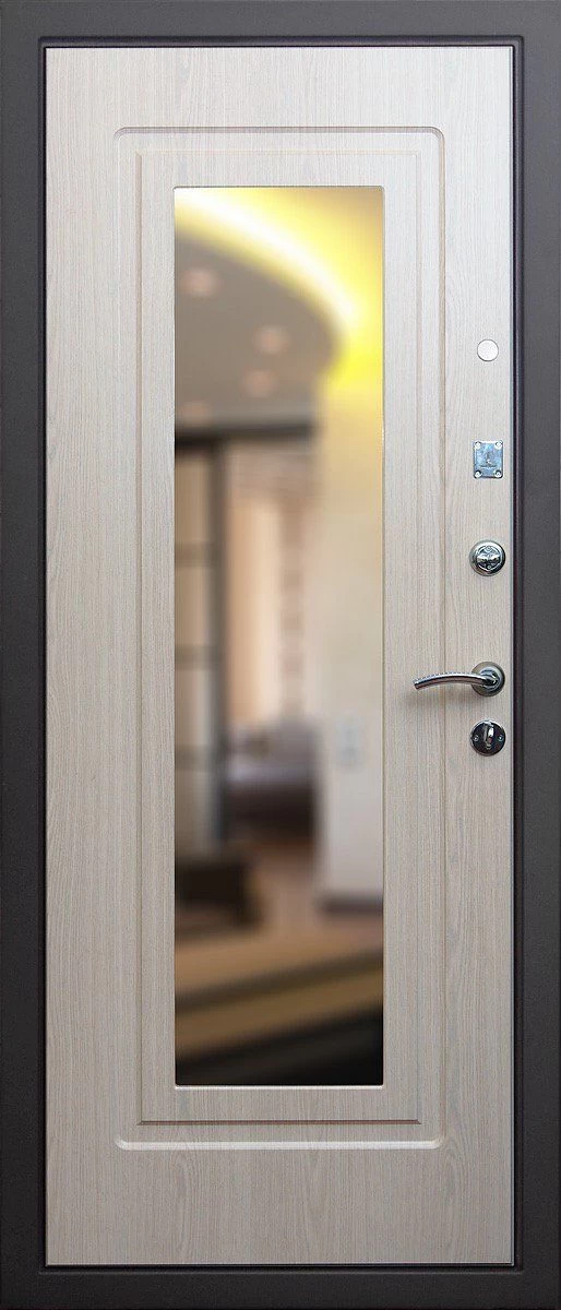 Прочная металлическая Дверь с зеркалом DZ385 по цене от 30 000 руб. под заказ в любой комплектации. Вы можете выбрать материал, замки, цилиндры и многое другое. Производим сами! Быстрая доставка и установка в Хилке.