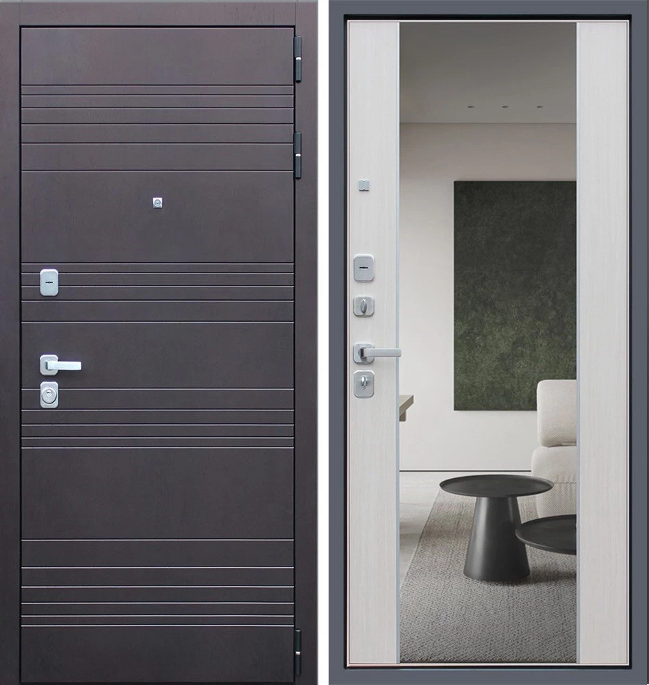 Надежная входная Дверь Дуэт с зеркалом премиум класса по цене 47 093 руб. Большая толщина стали защитит от проникновения в ваш дом, квартиру или коттедж. Используется очень качественная фурнитура: замки, цилиндры, ручки, защелки. Покрытие и отделка двери изготовлено под внимательным контролем производителя. Дверь имеет долгий срок службы и гарантию.